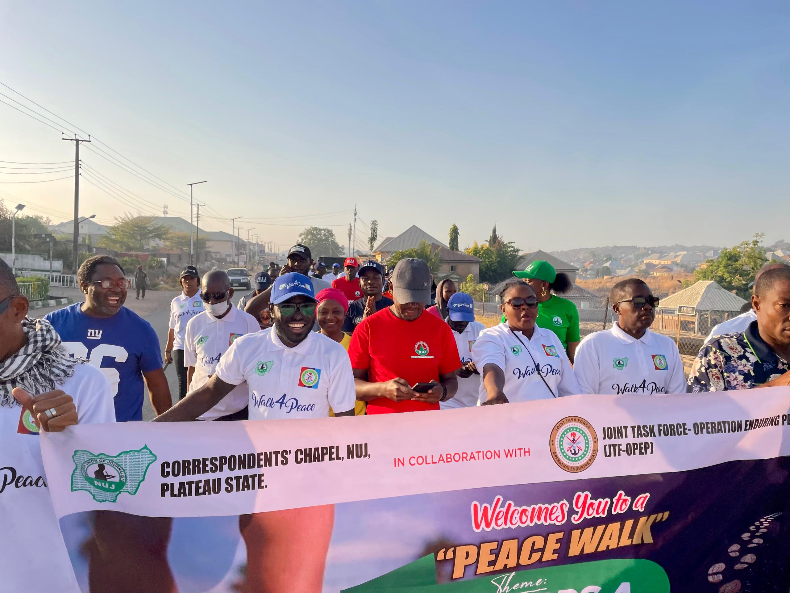 The Correspondents’ Chapel of the Nigeria Union of Journalists (NUJ), Plateau State, in partnership with the Joint Task Force – Operation Enduring Peace, successfully organized a “Peace Walk” to promote unity and calm during the festive season.